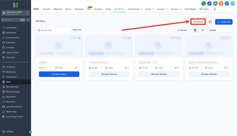Gehe zu Sites → WordPress.