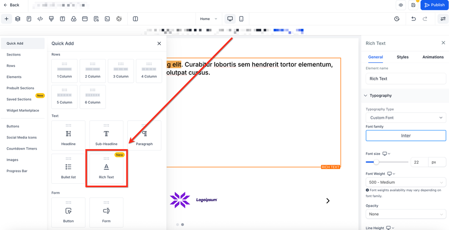 Sidebar → Quick Add → Rich Text