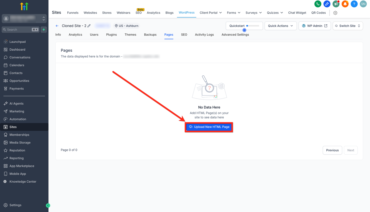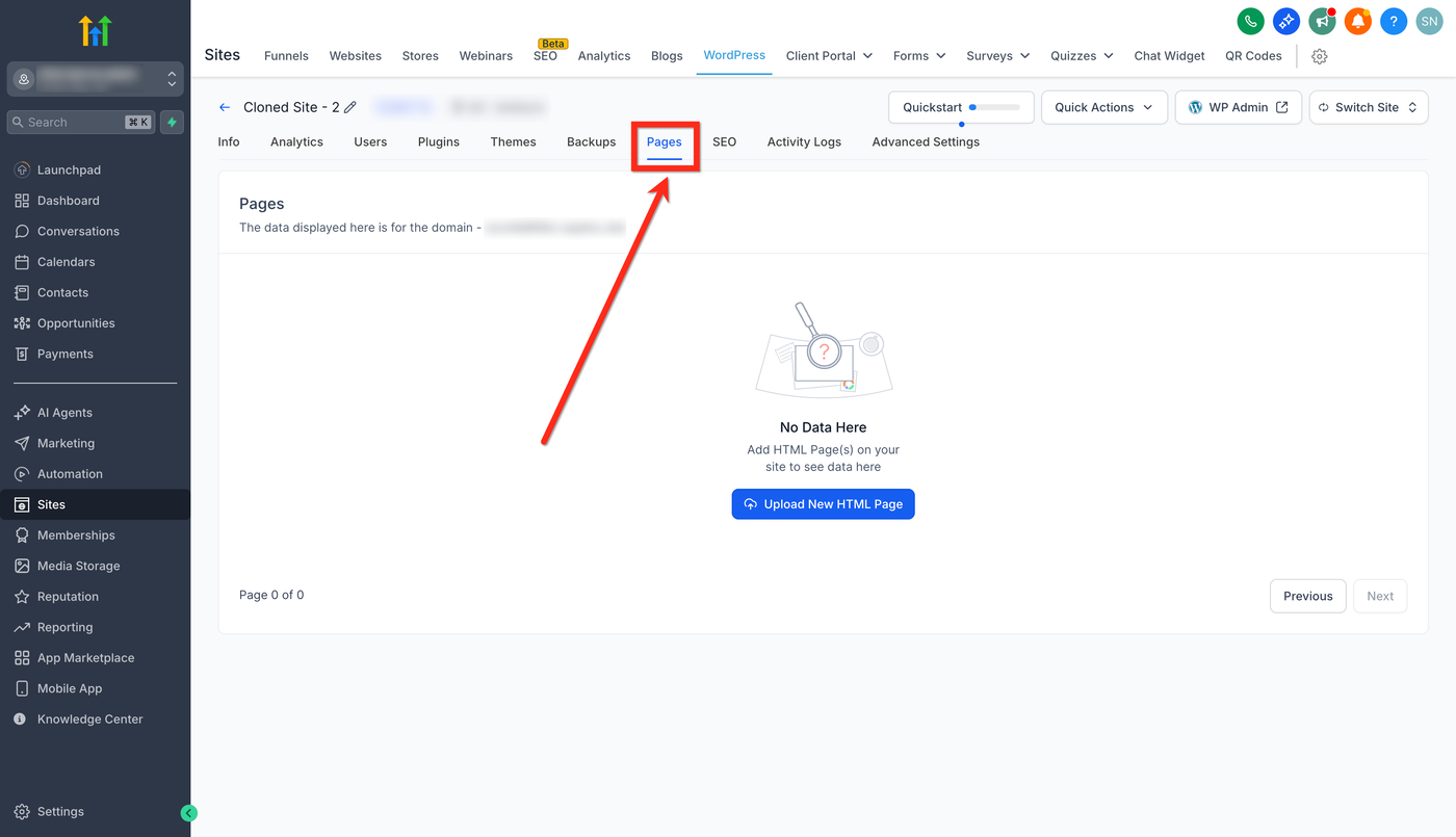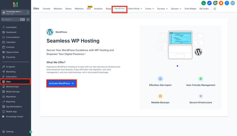 Gehen Sie zu Sites → WordPress in Ihrem ProfitBoost Dashboard.