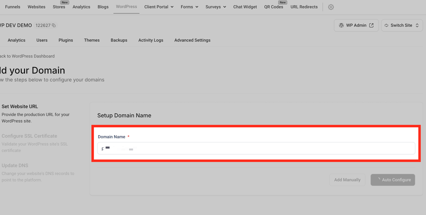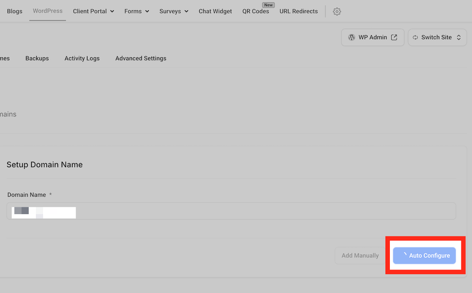 Klicken Sie auf „Auto Configure“, um die Domain-Verbindung zu starten.