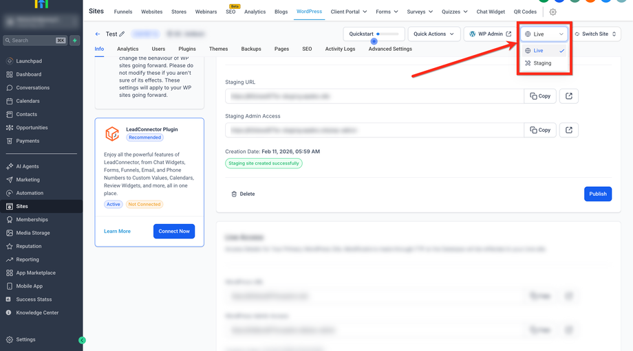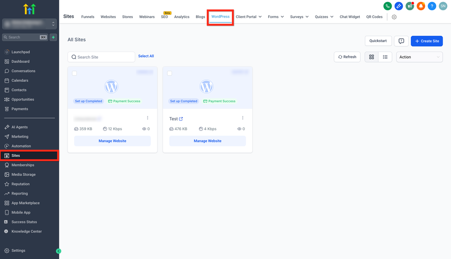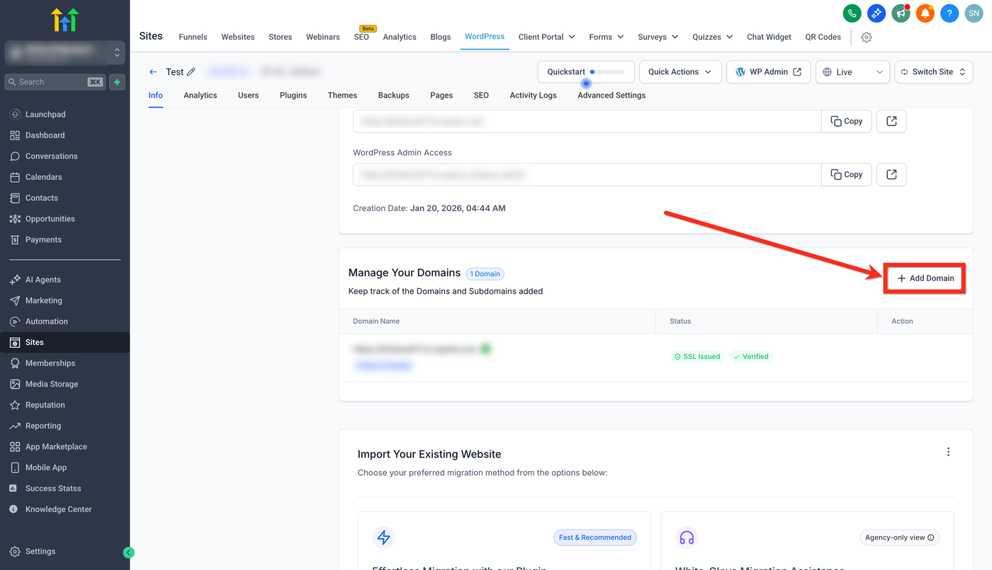 Deine WordPress-Site ist bereits im richtigen Sub-Account provisioniert.