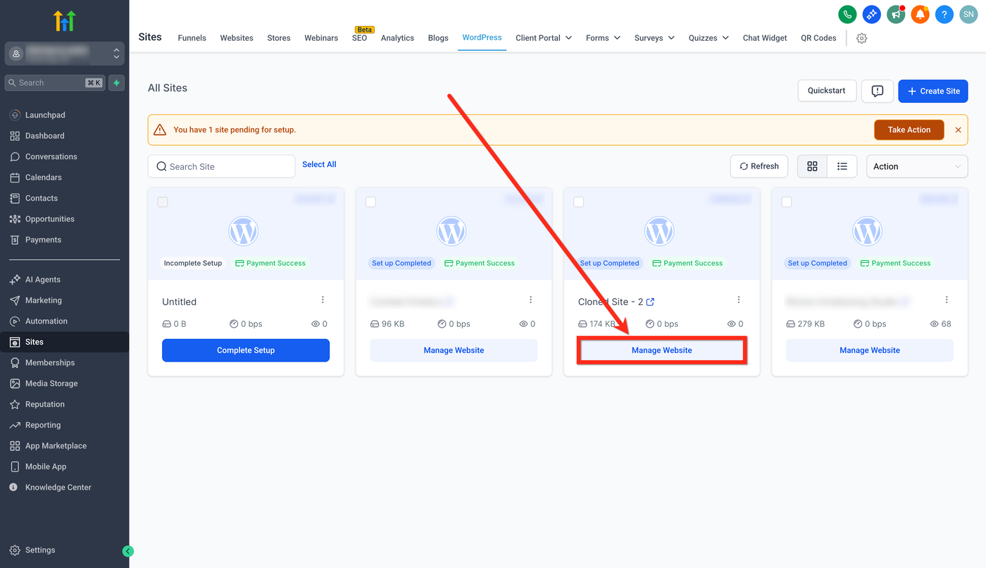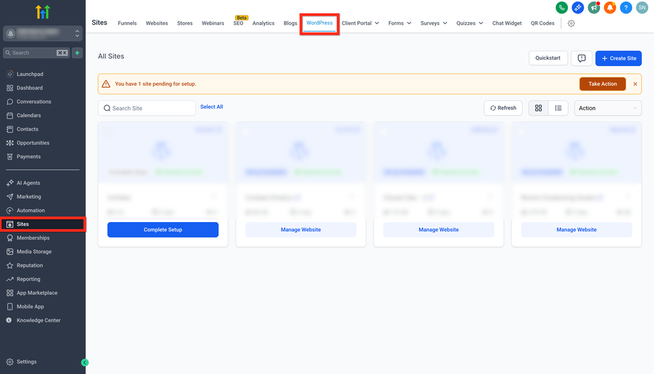 Gehe zu Sites → WordPress.