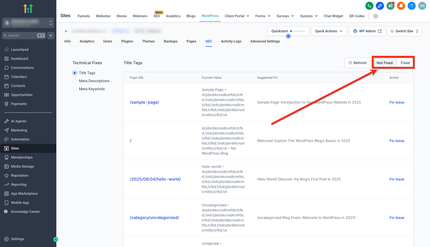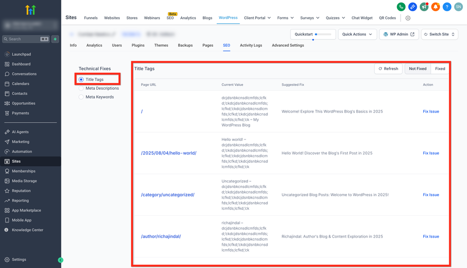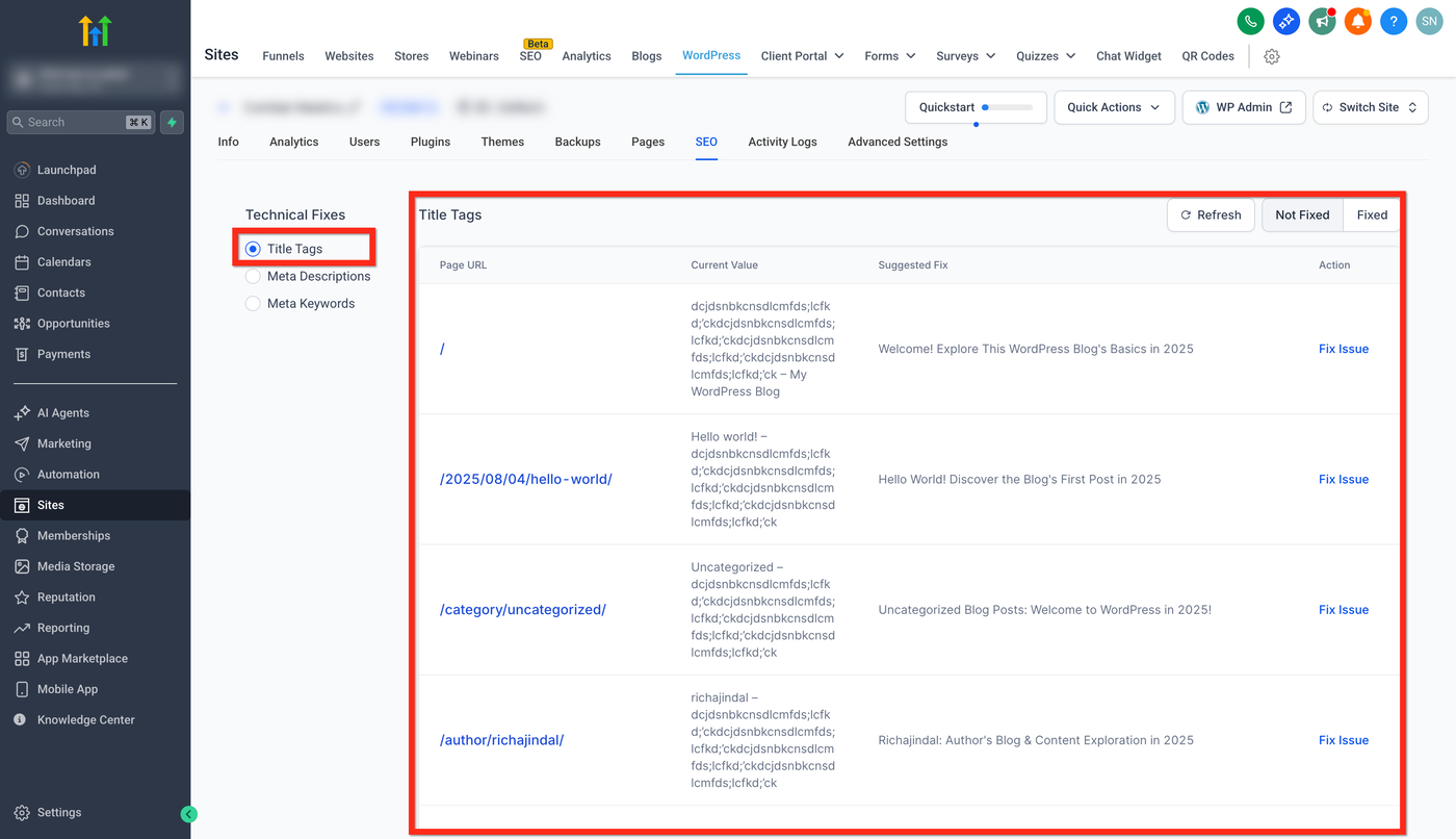 Was du tun solltest: Nutze Fix Now, um die entsprechende Bearbeitungsansicht zu öffnen und einen kurzen, klaren Titel zu erstellen, der die Hauptintention der Seite widerspiegelt.