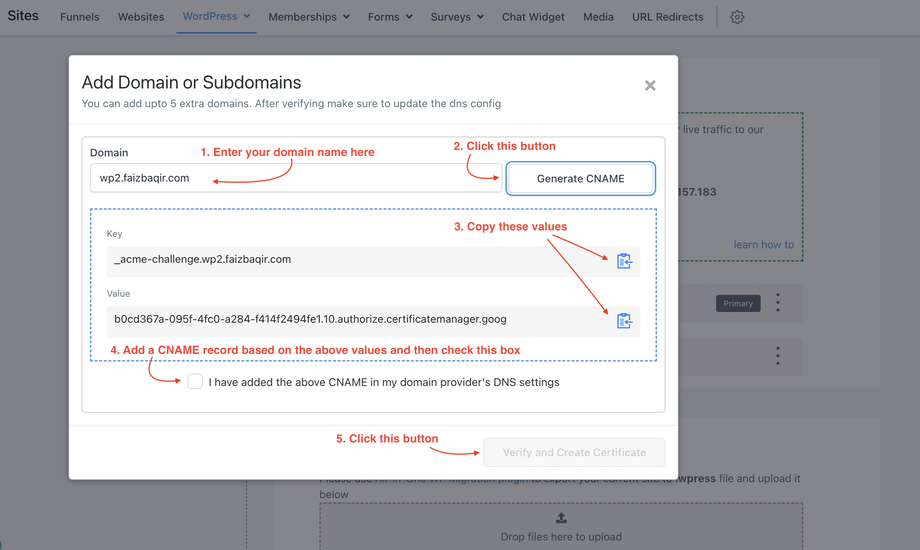 Klicke auf Generate CNAME.