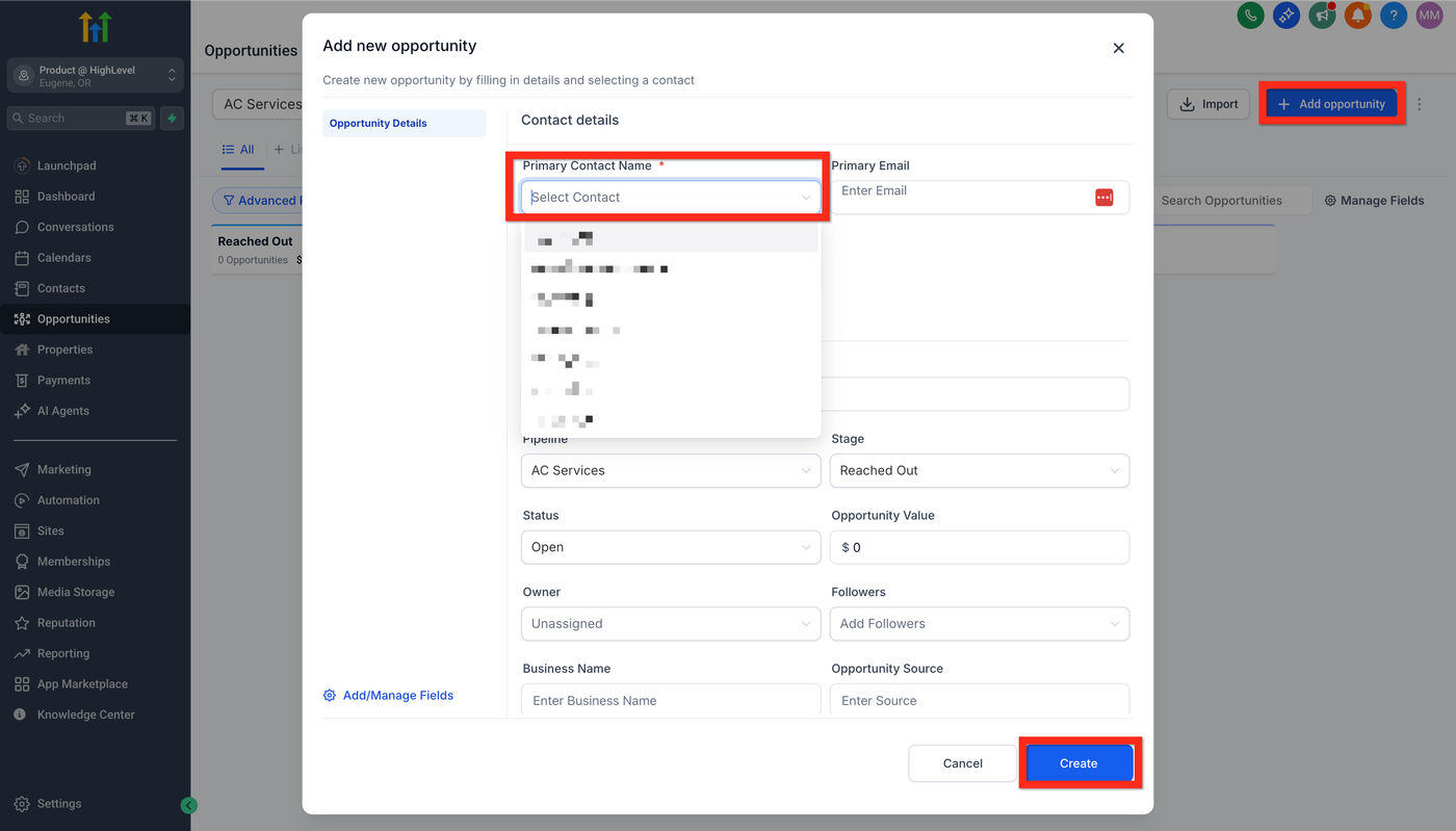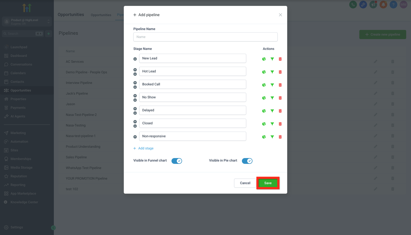 4 Fülle die Opportunity-Details aus (Pipeline Name, Stage, Value usw.).