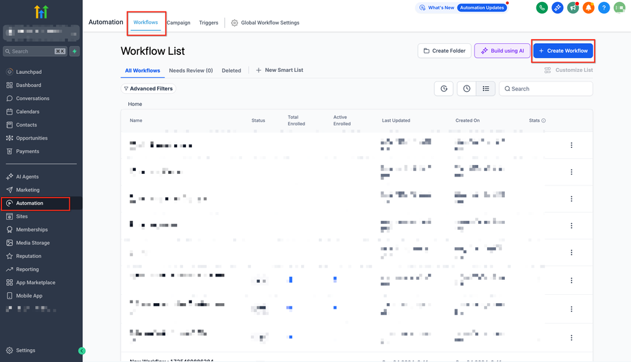 Gehe zu Automation → Workflows im linken Menü.