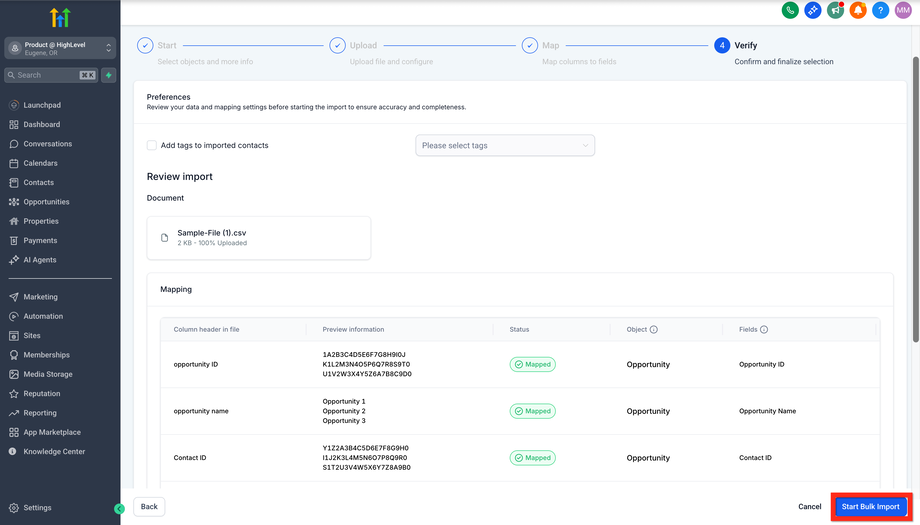 9 Überprüfe alle Informationen und klicke auf Start Bulk Import.