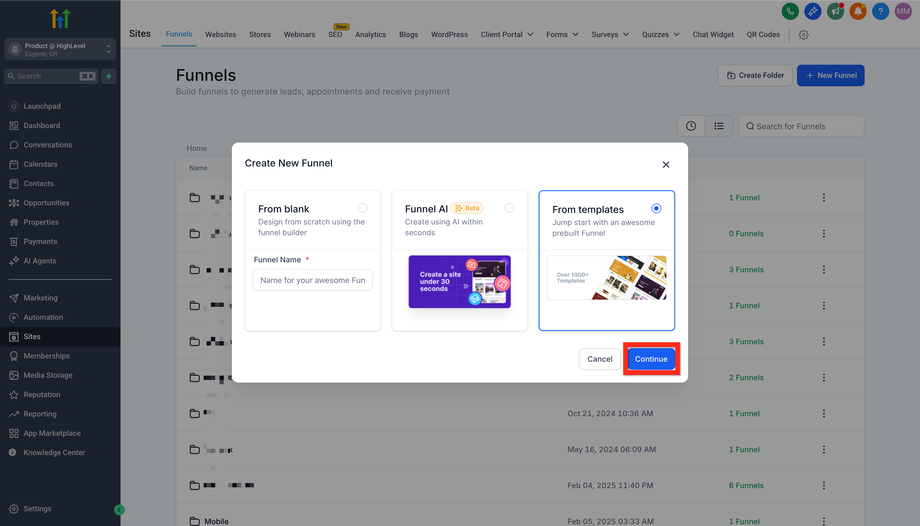 3 From Templates (nutze einen vorgefertigten Funnel)