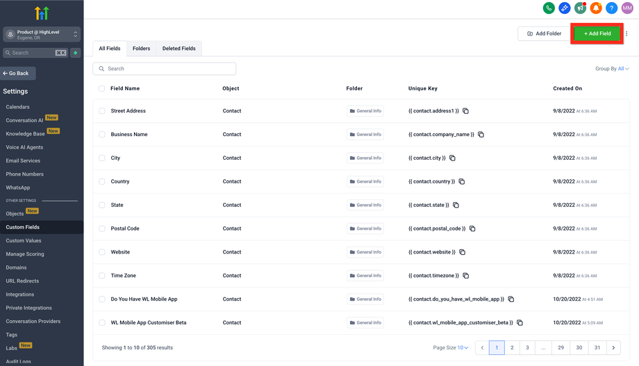 Klicke auf Feld hinzufügen.