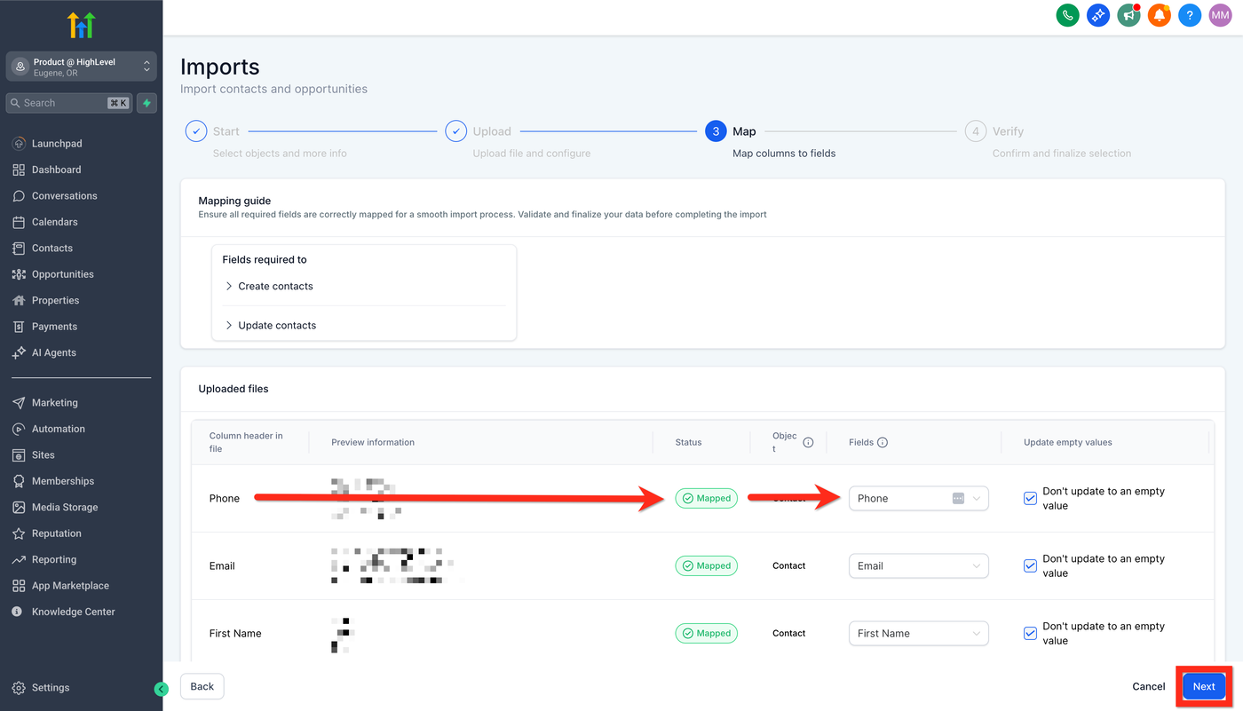 Ordne die Spalten deiner Datei den entsprechenden Contact Fields zu.