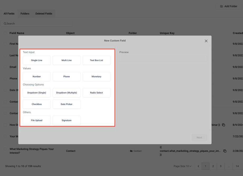 Custom Fields ermöglichen es dir, deine Contact-Datenbank an deine spezifischen Geschäftsanforderungen anzupassen. Verfolge mühelos die Daten, die für dich und dein Team am wichtigsten sind: