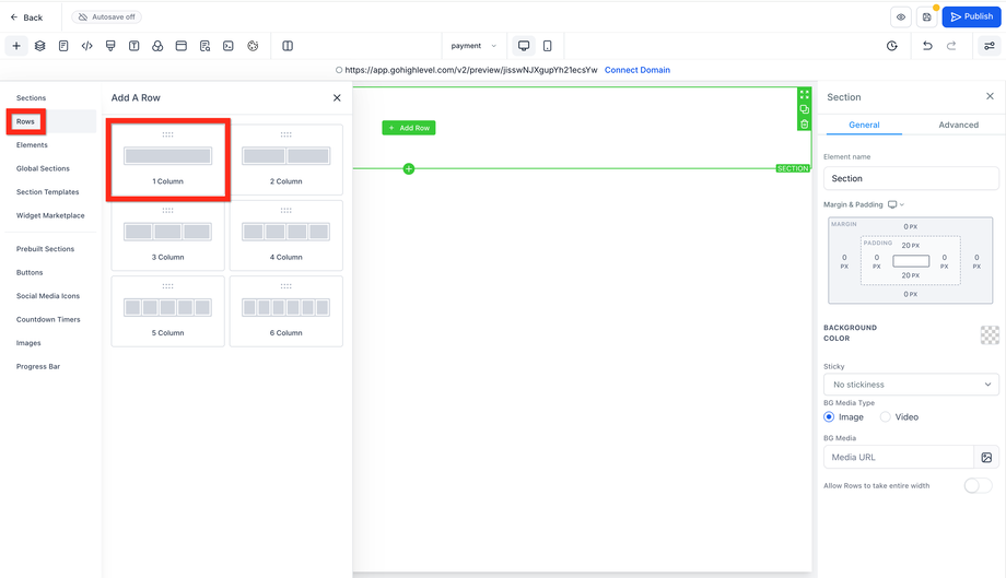 Füge in der Row ein One- oder Two-Step Order Form hinzu