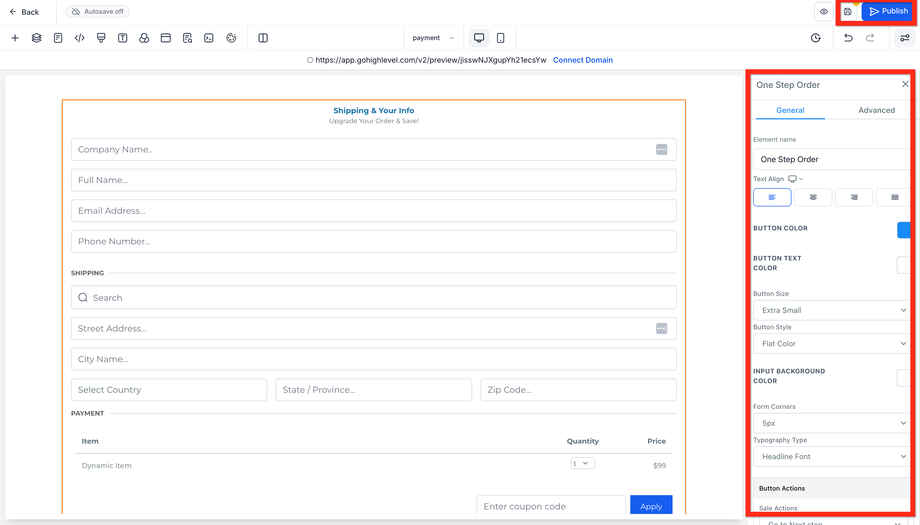 Dein Funnel-Order-Form sollte in etwa so aussehen:
