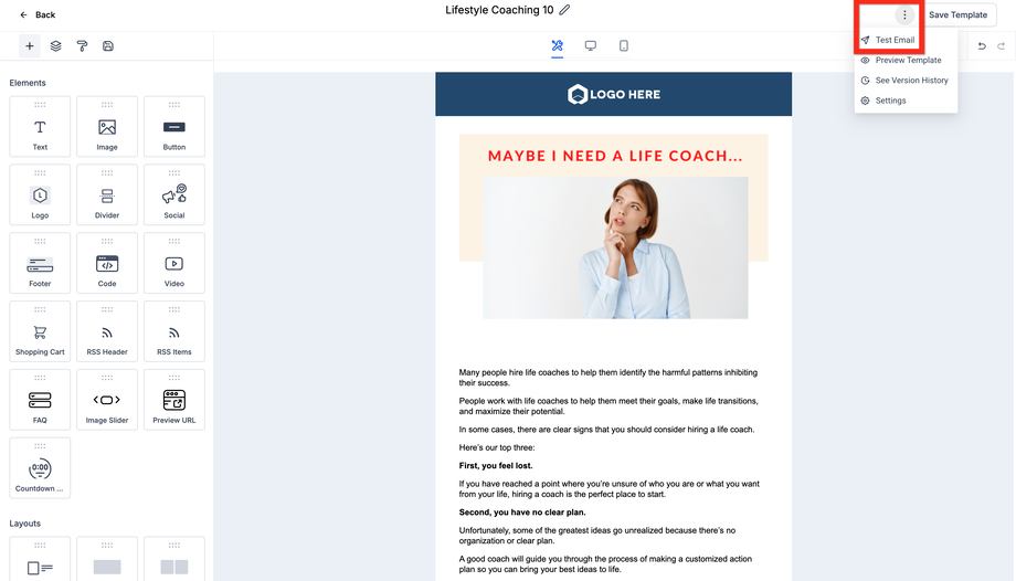 2 Öffne dein ausgewähltes Template im Email Editor.