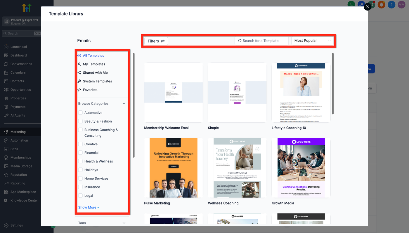 5 Durchsuche, suche und filtere die verfügbaren Templates, um die perfekte Vorlage zu finden.