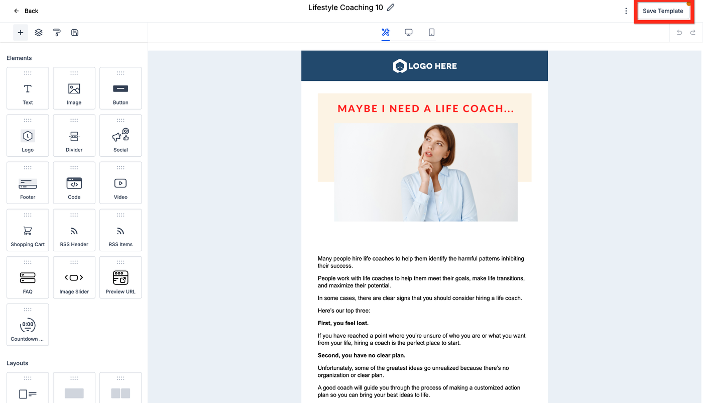 4 Klicke auf Save Template, um deine Änderungen zu speichern.