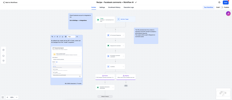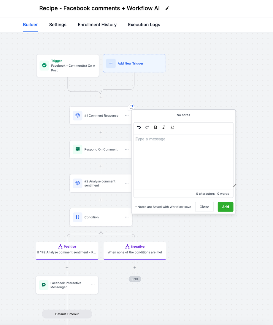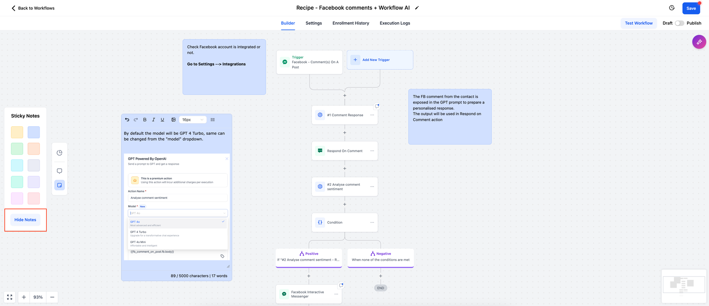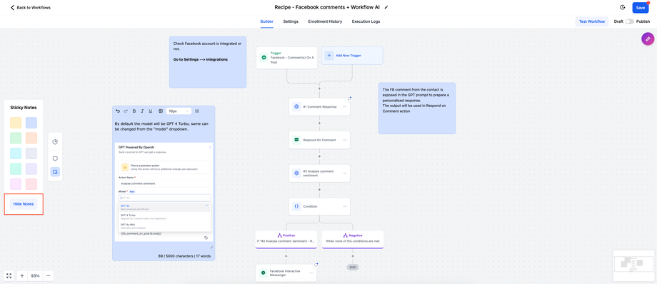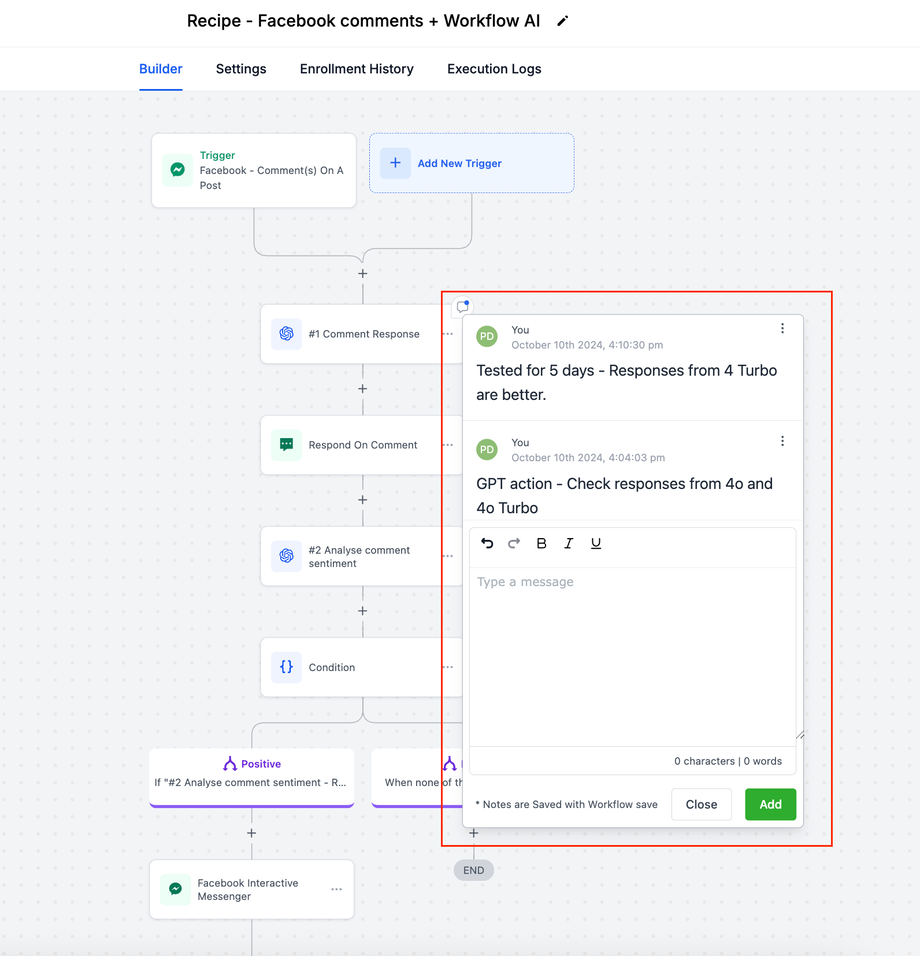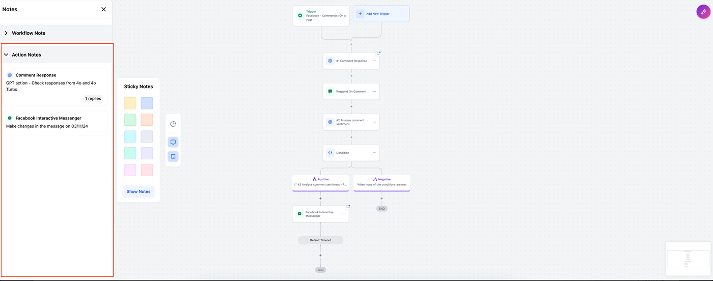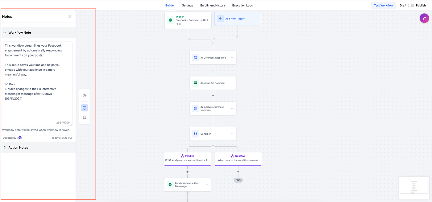 Action-Level-Notizen: Direkt an Aktionen angehängte Notizen liefern spezifische Anweisungen, Feedback oder Hintergrundinformationen. Dies sorgt für Klarheit und unterstützt die Zusammenarbeit, wenn verschiedene Teammitglieder am Workflow beteiligt sind.