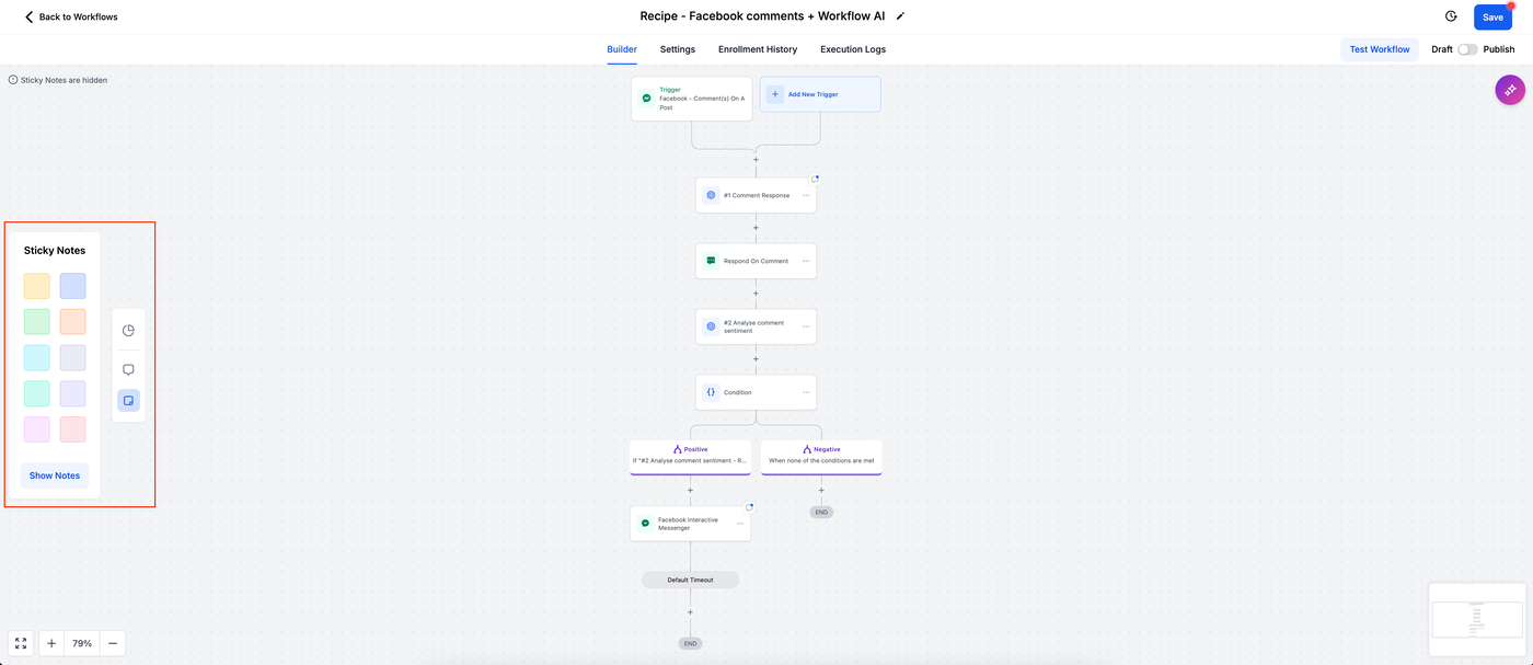 Füge deine Notizen hinzu, um Beschreibungen, Kontext oder Anweisungen für den gesamten Workflow bereitzustellen.