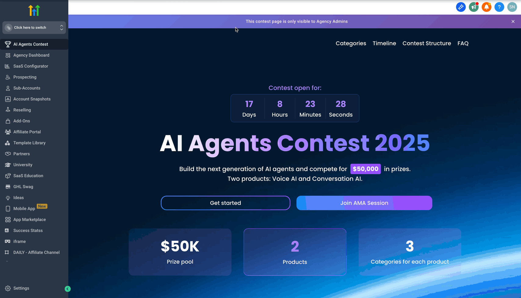 Neue Preisstufen sind zu Beginn nur für Agency Admins sichtbar