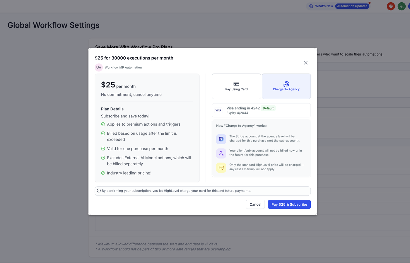 Subscription Plan: Agencies können Tiers kaufen, die monatliche Premium Executions enthalten